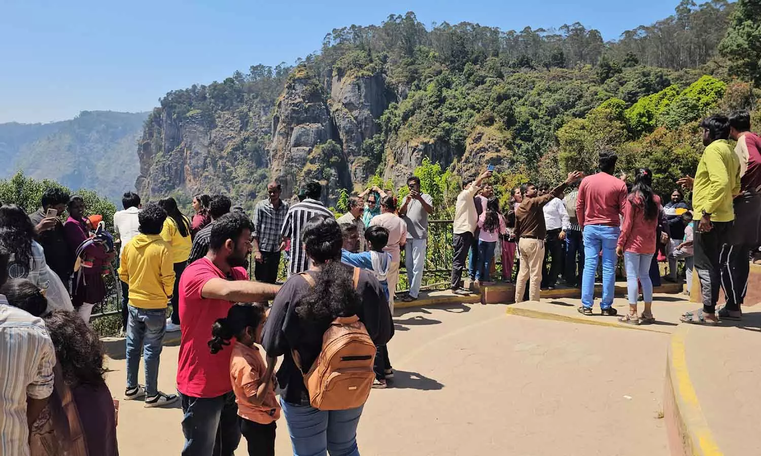 பொங்கல் விடுமுறைக்கு பிறகு சுற்றுலா பயணிகளின் கூட்டம் வெகுவாக குறைந்திருந்த நிலையில் தற்போது வார விடுமுறை கொண்டாடுவதற்காக பெரும்பாலும் கேரளா மற்றும் தமிழகத்தின் பல்வேறு பகுதிகளில் இருந்து அதிக அளவில் சுற்றுலாப்பயணிகள் குவிந்தனர்.