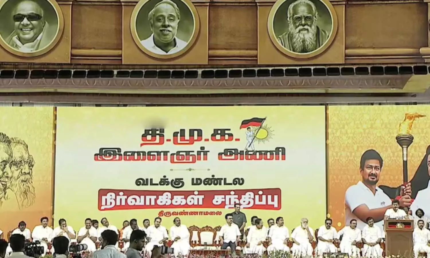 திருவண்ணாமலையை அடுத்த மலப்பாம்பாடியில் உள்ள கலைஞர் திடலில் தி.மு.க. இளைஞர் அணி வடக்கு மண்டல நிர்வாகிகள் மாநாடு இன்று நடைப்பெற்றது. அதில் பேசிய துணை முதலமைச்சர் உதயநிதி ஸ்டாலின்,