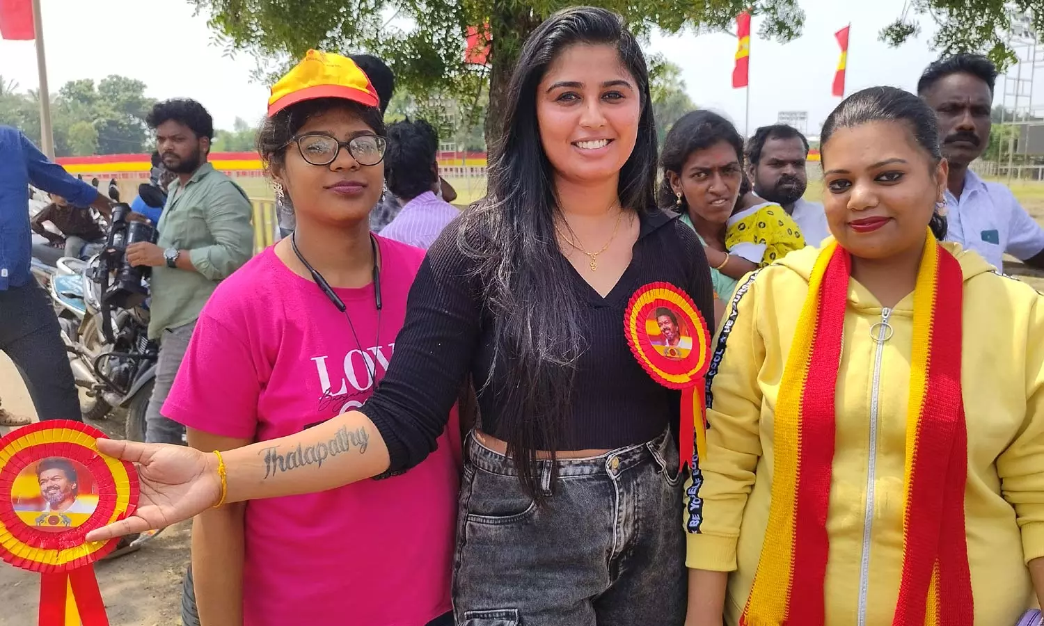மாநாட்டுக்கு பெங்களூருவில் இருந்து வந்த மோகன பிரியா, மோனிகா, ஐசு ஆகியோர் கையில் தளபதி என டாட்டூ குத்தி விக்கிரவாண்டிக்கு வந்தனர்.