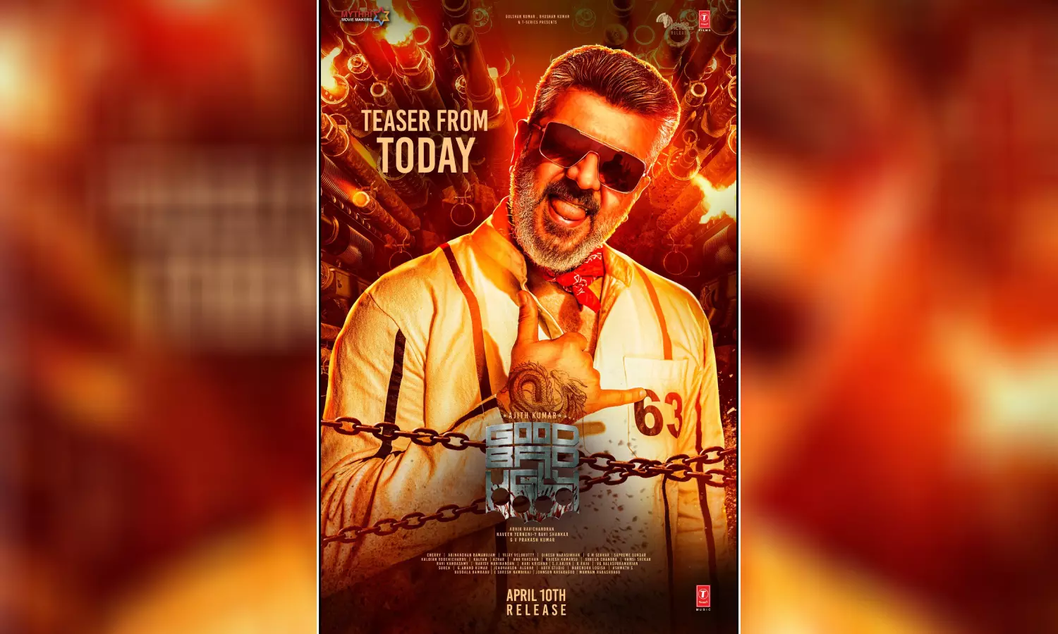 குட் பேட் அக்லி' திரைப்படம் வருகிற ஏப்ரல் மாதம் 10-ம் தேதி வெளியாகவுள்ளது. இந்தப் படத்தின் டீசர் இன்று மாலை 7.03 மணிக்கு படக்குழு வெளியிடவுள்ளதாக படக்குழு போஸ்டர் வெளியிட்டு அறிவித்துள்ளனர். 1 நிமிடம் 34 வினாடிகள் இந்த டீசரின் நீளம் அமைந்துள்ளது. இந்த டீசருக்காக ரசிகர்கள் மிகவும் எதிர்ப்பார்ப்புடன் காத்துக் கொண்டு இருக்கின்றனர்.