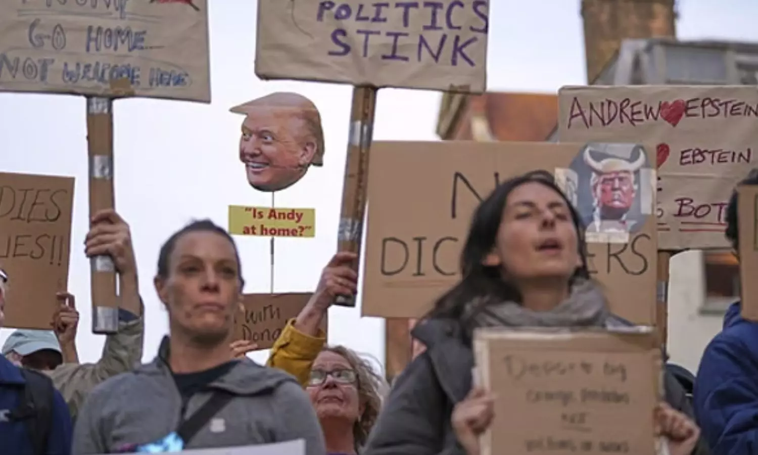 டிரம்ப் விண்ட்சர் கோட்டையில் இருக்கும் அதே நேரத்தில், மத்திய லண்டனில் நூற்றுக்கணக்கான மக்கள் டிரம்ப் வருகைக்கு எதிராக ஆர்ப்பாட்டத்தில் ஈடுபட்டனர்.