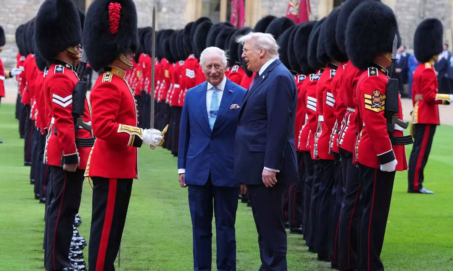 - மன்னர் சார்லஸ் மற்றும் ராணி கமில்லாவுடன் சேர்ந்து குதிரை வண்டியில் பயணம் செய்த டிரம்ப், ராணுவ அணிவகுப்பை பார்வையிட்டார்.