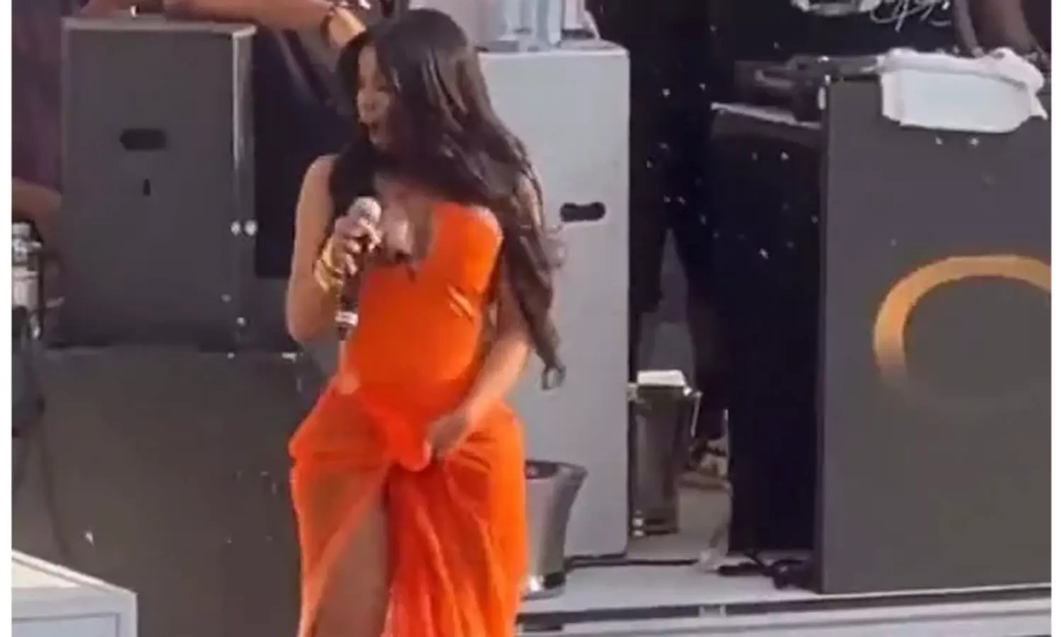 அமெரிக்காவில் நடைபெற்ற கச்சேரி ஒன்றில் பிரபல ராப் பாடகி கார்டி பி மேடையில் நடனமுடன் பாடிக் கொண்டிருந்தார்.
