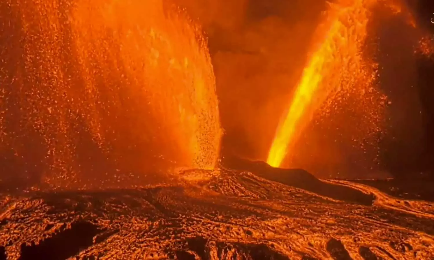 - 2,400 அடி உயரத்துக்கு எரிமலை குழம்புகளை பீச்சி அடித்துள்ளது.