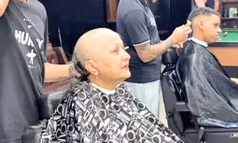 - முடி திருத்தும் தொழிலாளி ஒருவர், புற்றுநோயால் பாதிக்கப்பட்ட தனது தாயின் தலைமுடியை மொட்டையடிக்கிறார்.