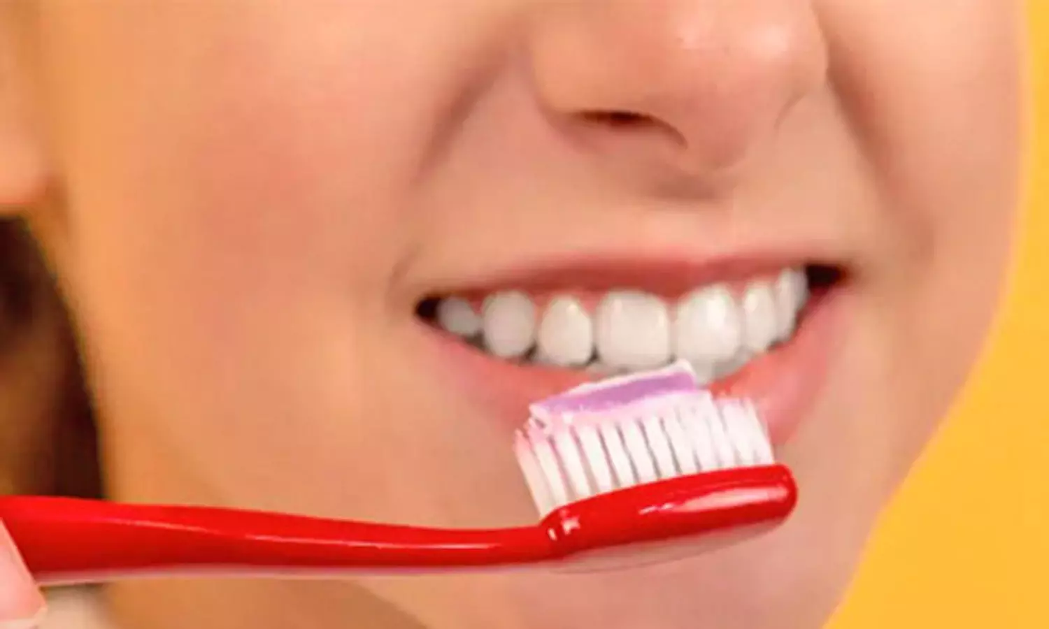 வலி நிவாரண கிரீம் மூலம் பல் துலக்கிய பெண்
