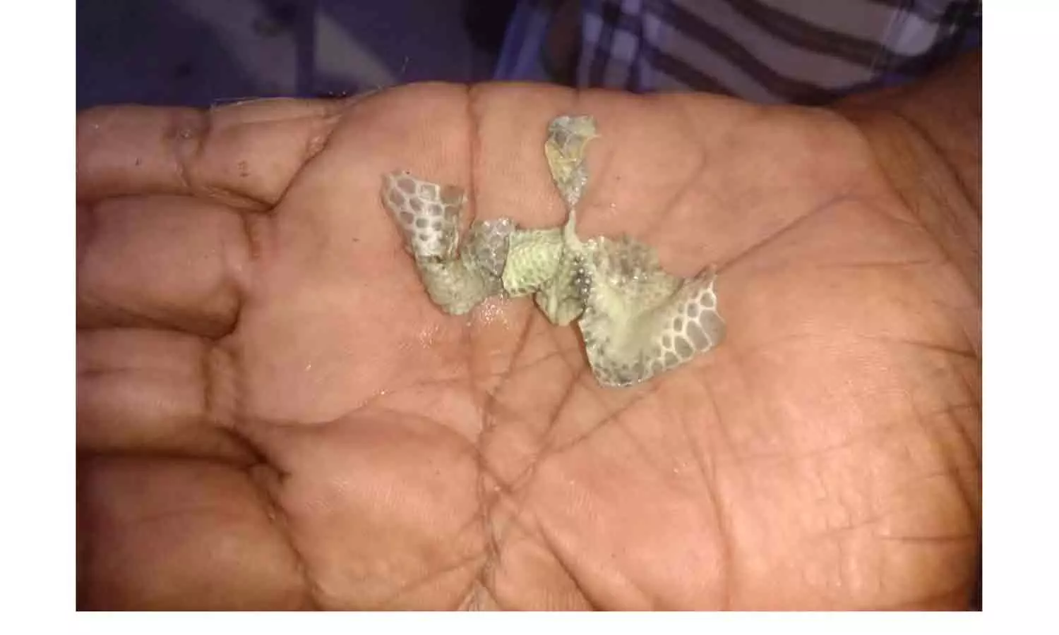 குடிநீர் குழாயில் இருந்து வந்த பாம்பு தோல்.