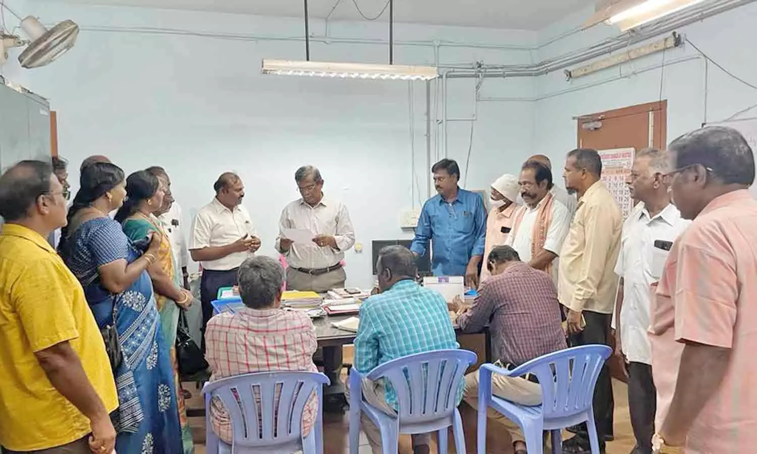 பா.ஜனதா புதுவை அரியாங்குப்பம் தொகுதி தலைவர் செல்வகுமார் மக்களுடன் மின்துறை பொறியாளரை சந்தித்து மனு கொடுத்த போது எடுத்த படம்.