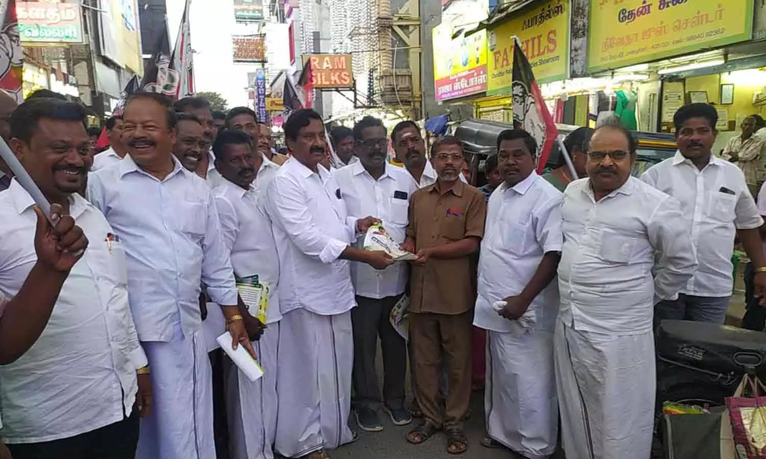 - அண்ணாசிலையில் தொடங்கி அண்ணாசாலை, நேருவீதி, காந்திவீதி, பெரியமார்க்கெட் வீதி வியாபாரிகள், ஆட்டோ ஓட்டுநர்களிடம் துண்டு பிரசுரம் வழங்கி பந்த் போராட்டத்திற்கு ஆதரவு கோரினர்.