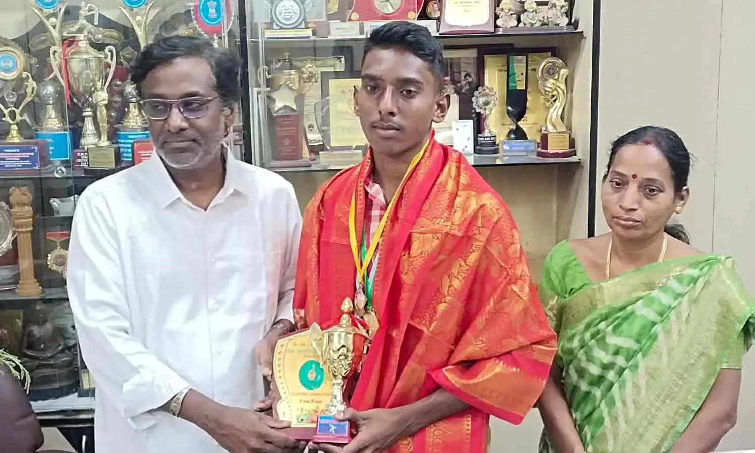 - அப்போது மாணவனின் பெற்றோர்களும் பயிற்சியாளரும் உடன் இருந்தனர்.
