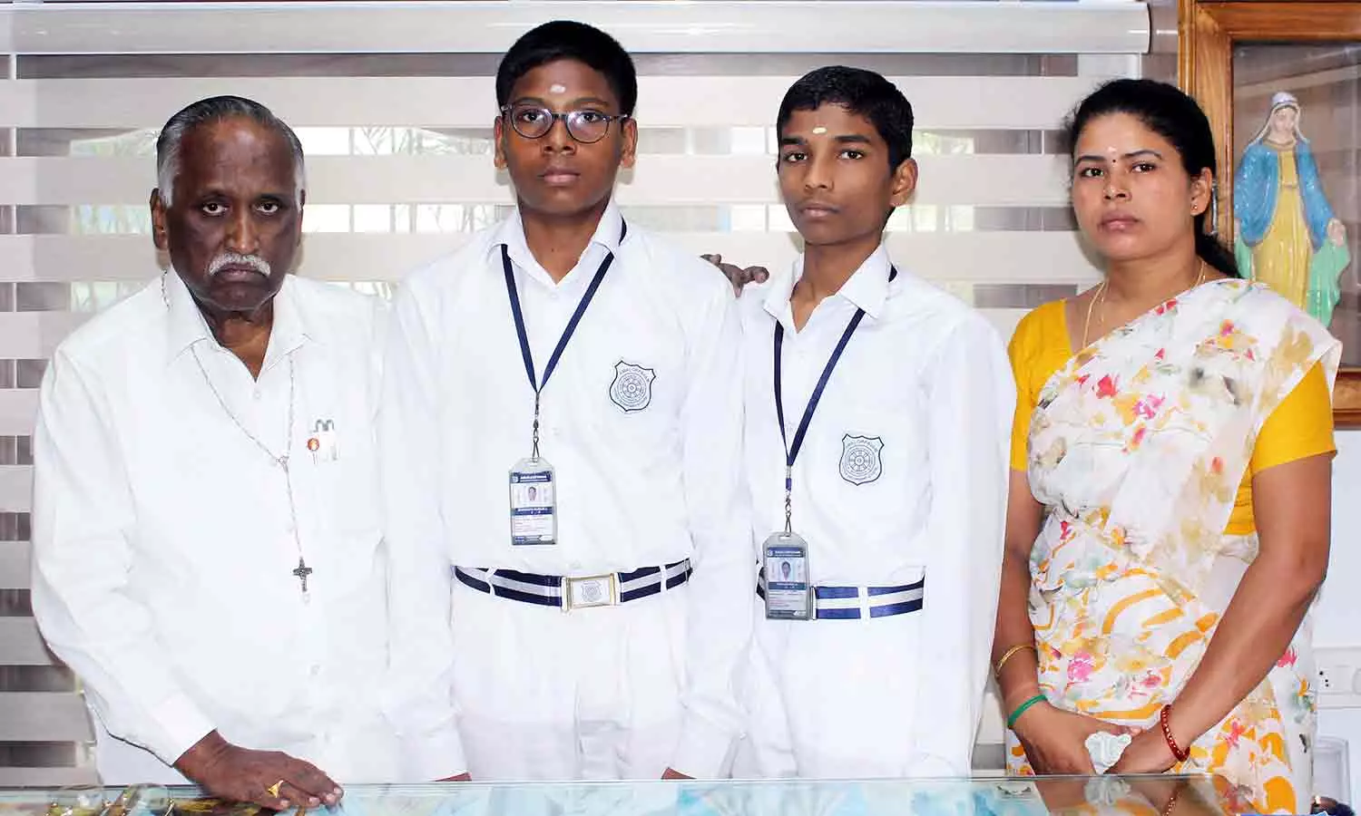 பள்ளிக்கு பெருமை சேர்த்த மாணவர்களை, முதுநிலை முதல்வர் லூர்துசாமி பாராட்டி, தலா 4 கிராம் தங்க நாணயம் பரிசளித்து, வாழ்த்தினார்.
