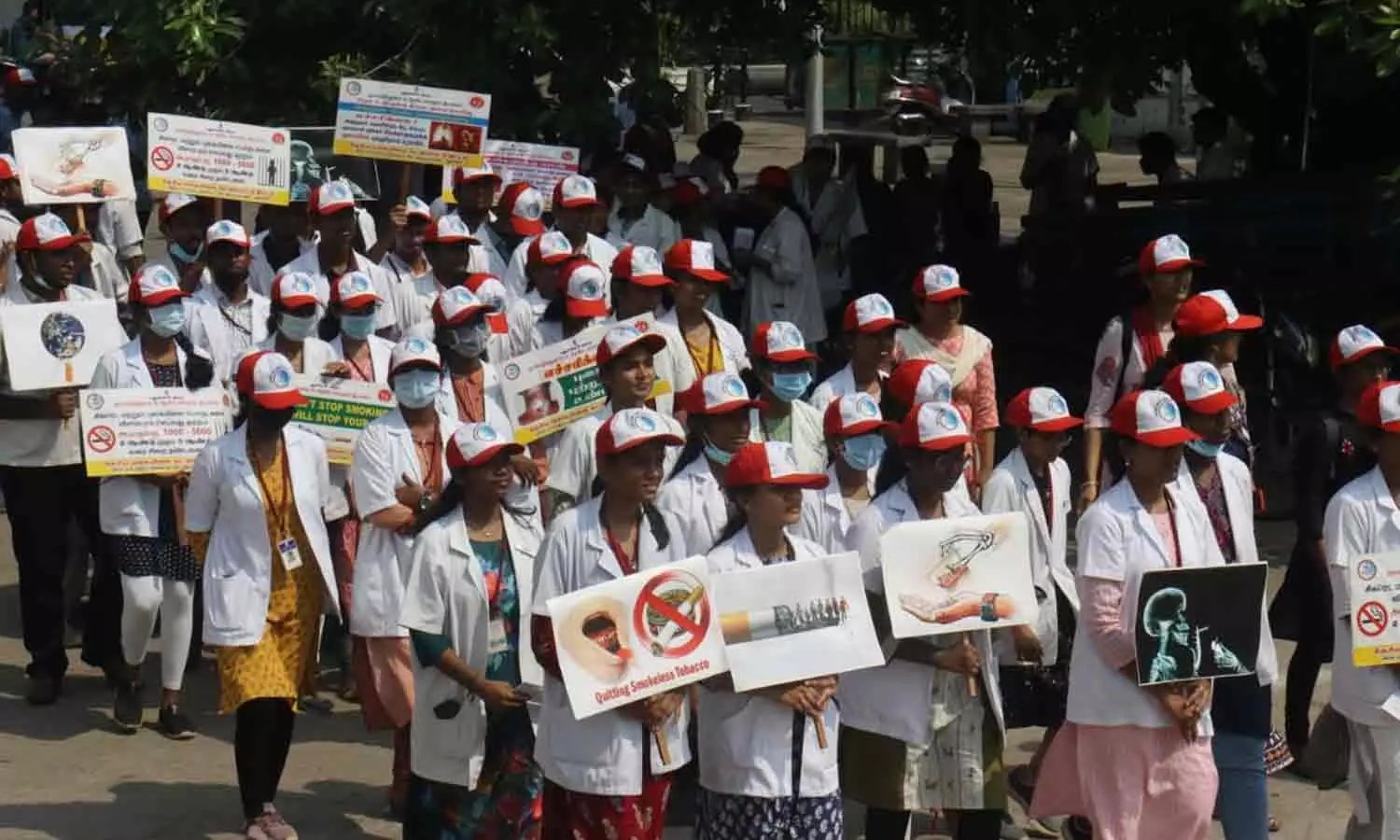 பேரணியை சுகாதாரத்துறை இயக்குனர் ஸ்ரீராமுலு தொடங்கி வைத்தார். மாநில புகையிலை கட்டுப்பாட்டு அதிகாரி வெங்கடேஷ், ஆலோசகர் சூரியகுமார், மணிமாறன் ஆகியோர் பங்கேற்றனர். பேரணியில் இந்திராகாந்தி அரசு மருத்துவ கல்லூரி, மகாத்மா காந்தி பல் மருத்துவ கல்லூரி, இந்திராகாந்தி பல் மருத்துவ கல்லூரி, வெங்கடேஸ்வரா பல் மருத்துவ கல்லூரியை சேர்ந்த மாணவர்கள் பங்கேற்றனர்.