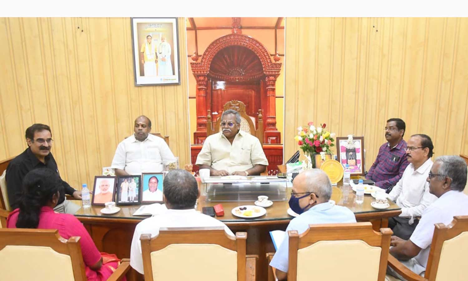 சபாநாயகர் ஏம்பலம் செல்வம் தலைமையில் ஆலேசானை கூட்டம் நடந்த போது எடுத்த படம்.