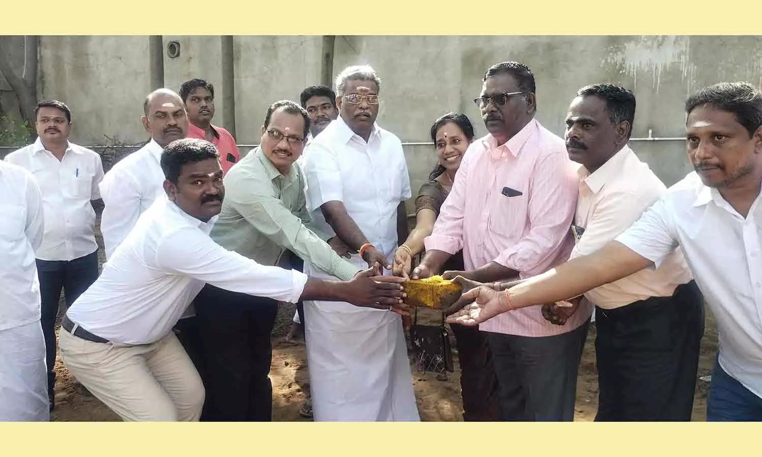அரசு தொடக்கப்பள்ளியில் வகுப்பறை கட்டுவதற்கான பூமி பூஜை பணியை துணை சபாநாயகர் ராஜவேலு தொடங்கி வைத்த காட்சி.