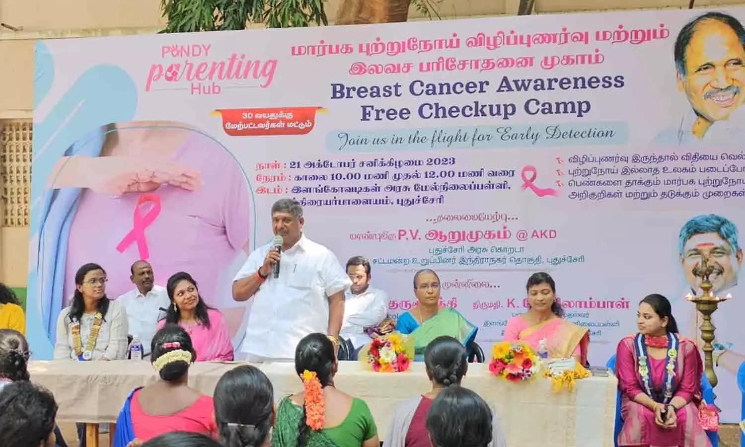 முத்திரையர்பாளையம் இளங்கோ அடிகள் அரசினர் மேல்நிலைப் பள்ளியில் புவுண்டர் ஆப் பாண்டி பேரண்டிங் ஹப் புதுவை ரிவேஜ் லேடிஸ் சர்கில் சார்பில் இலவச மார்பக புற்றுநோய் மற்றும் விழிப்புணர்வு பரிசோதனை முகாம் நடைபெற்றது.
