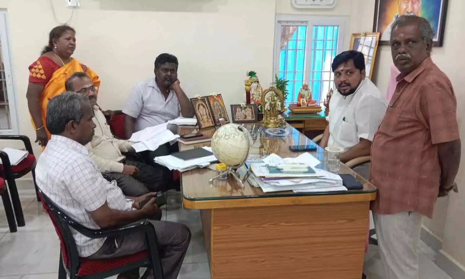 மின்துறை செயற்பொறி யாளர் செந்தில்குமார், நக ராட்சி செயற்பொறியாளர் சிவபாலன், இளநிலைப் பொறியாளர் சிவசுப்பிரமணியம் ஆகியோர் கலந்து கொண்டு ஆலோசித்து மேற்படி பகுதிகளுக்கு சாலைகளில் எந்த சேதமும் ஏற்படாமல் உடனடியாக புதைவட கேபிள் அமைக்க ஆலோசித்து இந்த பணிகளை உடனடியாக தொடங்க நடவடிக்கை எடுப்பதாக அதிகாரிகள் உறுதியளித்தனர்.