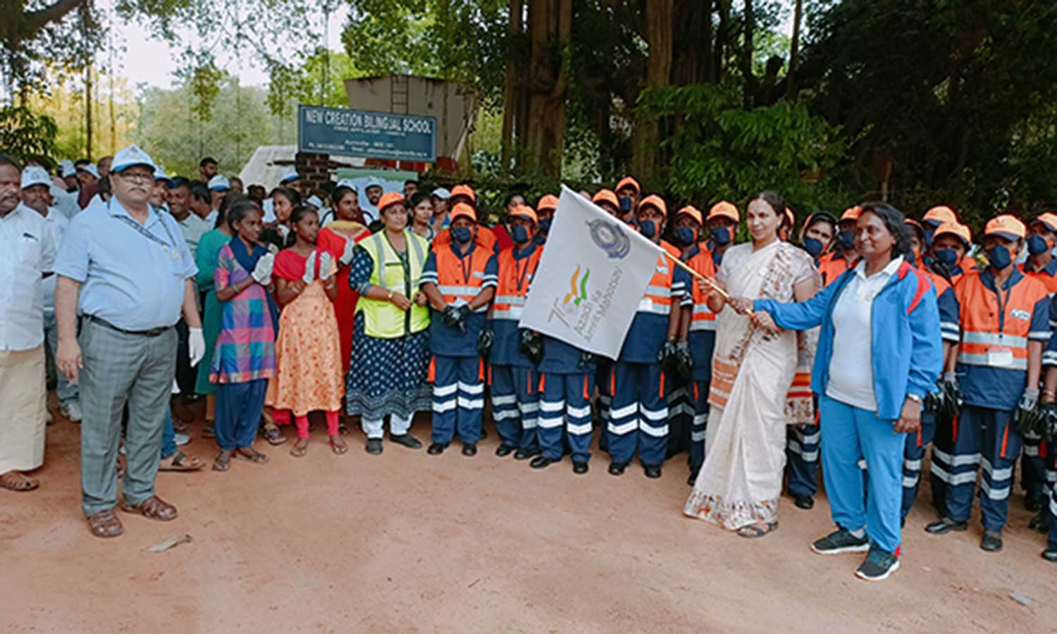 ஆரோவில் சர்வதேச நகரத்தில் நடந்த மெகா தூய்மைப்படுத்தும் பணியினை ஆரோவில் செயலர் ஜெயந்தி ரவி, ஜி.எஸ்.டி கவுன்சில் ஆணையர் பத்மஸ்ரீ ஆகியோர் தொடங்கி வைத்த காட்சி.