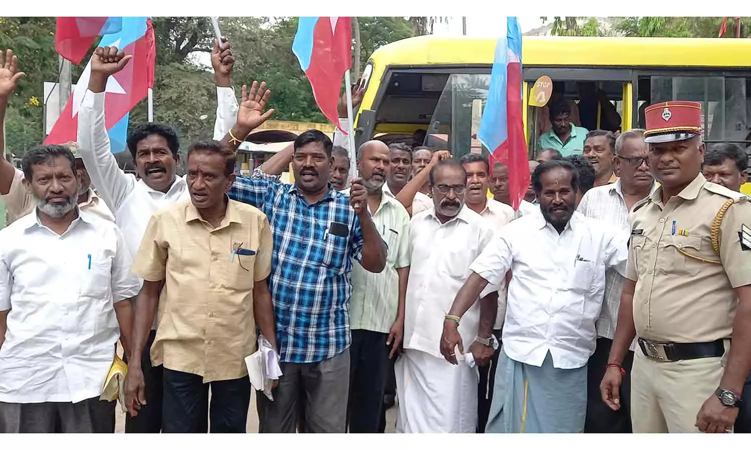 திருபுவனை கூட்டுறவு நூற்பாலை ஊழியர்கள் கண்டன ஆர்ப்பாட்டத்தில் ஈடுபட்ட போது எடுத்த படம்.