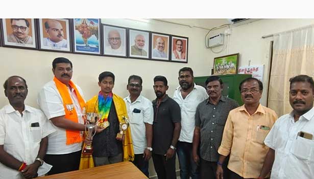 இதையடுத்து புதுவை மாநிலத்துக்கு சிறப்பு சேர்த்த கல்லூரி மாணவர் விஷ்வா ராஜகுமார் அசோக் பாபு எம்.எல்.ஏ.வை சந்தித்து வாழ்த்து பெற்றார். அவருக்கு அசோக்பாபு எம்.எல்.ஏ. சால்வை அணிவித்து பாராட்டினார்.