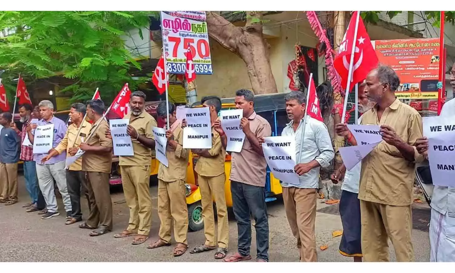 மார்க்சிஸ்டு கம்யூனிஸ்டு கட்சியின் புதுவை நகர கமிட்டி சார்பில் மணிப்பூர் கலவரத்தை கண்டித்து கண்டன ஆர்ப்பாட்டம் நடந்தது. காந்திவீதி, ஈஸ்வரன் கோவில் வீதி சந்திப்பில் ஆர்ப்பாட்டத்துக்கு நகர செயலாளர் மதிவாணன் தலைமை வகித்தார். மாநில செயலாளர் ராஜாங்கம், செயற்குழு உறுப்பினர் ராமச்சந்திரன், மாநிலக்குழு உறுப்பினர் சரவணன், கிளை செயலாளர்கள் ஸ்டாலின், ஆனந்த், ராமு, பாரி, கமிட்டி உறுப்பினர்கள் வீரா, ரஞ்சித், மணவாளன் உட்பட பலர் கலந்துகொண்டனர்.