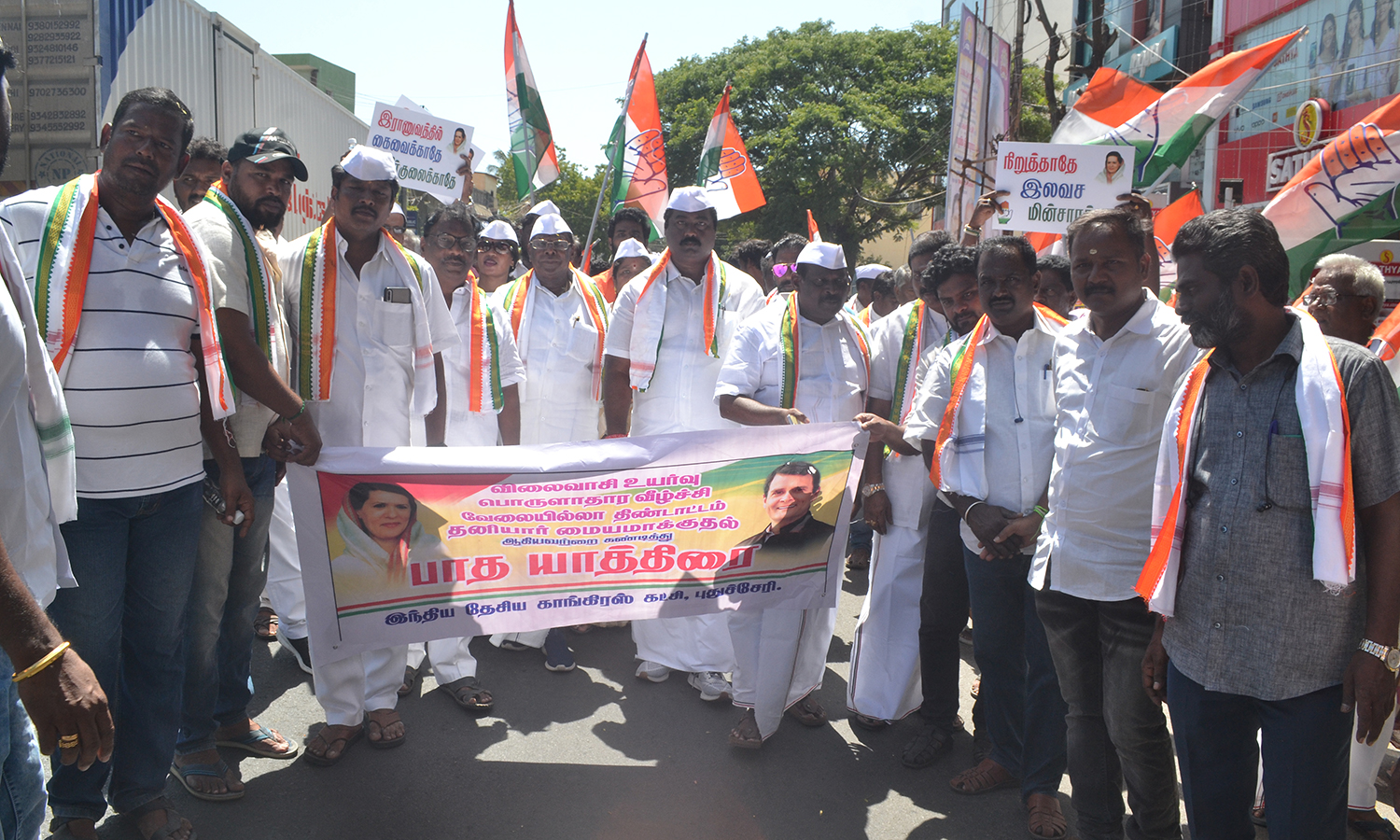 மத்திய மாவட்ட காங்கிரஸ் சார்பில் பாதயாத்திரை நடந்த போத எடுத்த காட்சி.