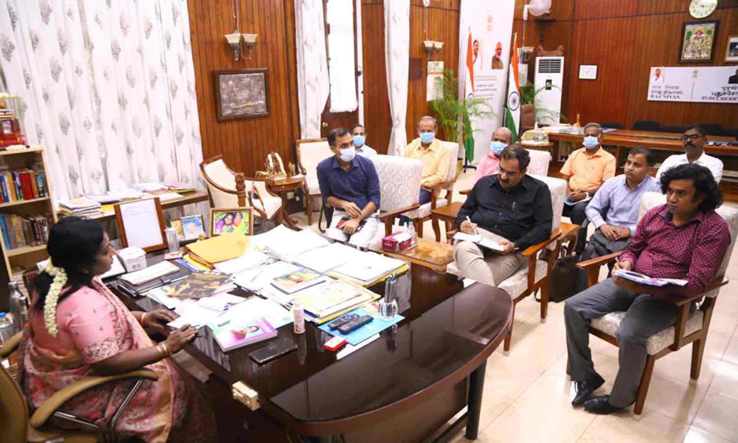 கவர்னர் தமிழிசை தலைமையில் ராஜ் நிவாஸில் ஆலோசனை கூட்டம் நடைபெற்ற காட்சி.