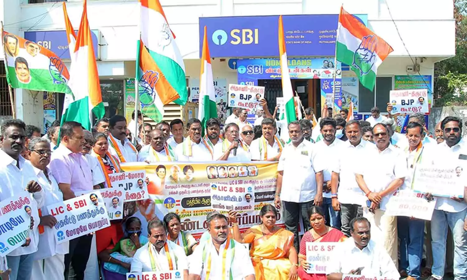 எல்.ஐ.சி. மற்றும் எஸ்.பி.ஐ. வங்கியில் ஒரு லட்சத்து 13, 000 ஆயிரம் கோடி பொதுமக்களின் பணத்தை ஏமாற்றி அதானிக்கு முதலீடு செய்ய உறுதுணையாக இருந்த மோடி அரசை பதிவி விலகக் கோரி புதுவை முதலியார்பேட்டை எஸ்.பி.ஐ. வங்கி முன் மத்திய மாவட்ட காங்கிரஸ் தலைவர் கோபி என்ற கோபாலமூர்த்தி தலைமையில் கண்டன ஆர்ப்பாட்டம் நடைபெற்றது. இந்த ஆர்ப்பாட்டத்தில் முன்னாள் முதல்-அமைச்சர் நாராயணசாமி காங்கிரஸ் கட்சி தலைவர் ஏ.வி.சுப்பிரமணியன், வைத்தியநாதன் எம்.எல்.ஏ. முன்னாள் அமைச்சர் கந்தசாமி, முன்னாள் அரசு கொறடா அனந்தராமன் மற்றும் காங்கிரஸ் நிர்வாகிகள் கலந்து கொண்டனர்.