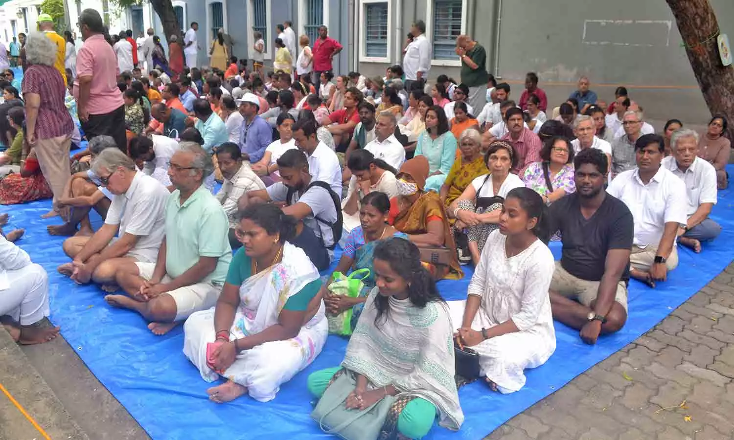 பக்தர்கள் கூட்டு தியானத்தில் ஈடுபட்ட காட்சி.