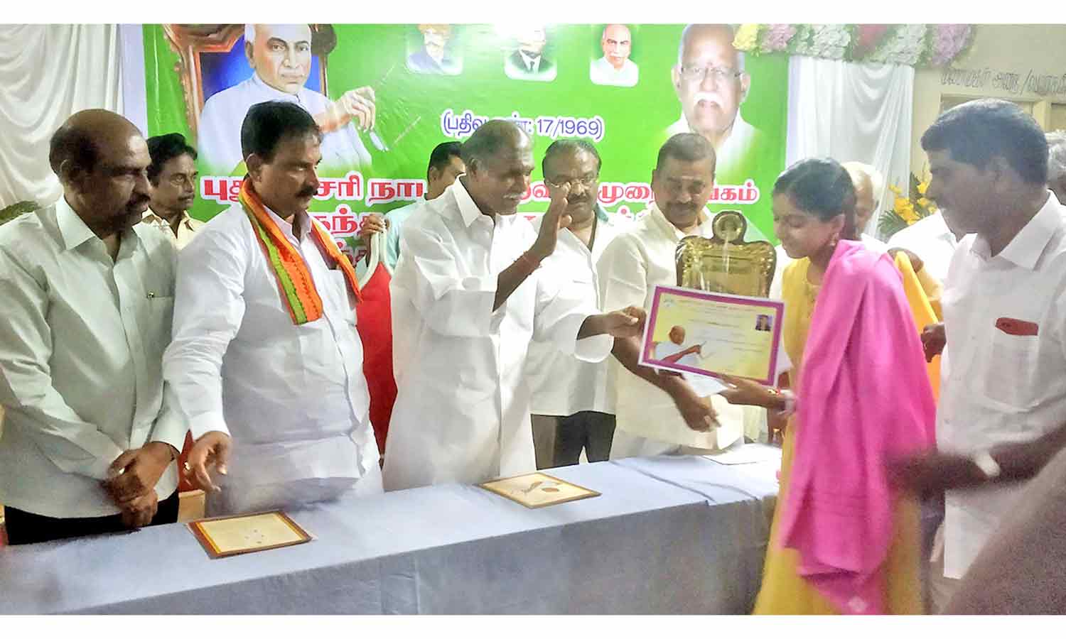 - சிறப்பு விருந்தினராக முதல்-அமைச்சர் ரங்கசாமி கலந்து கொண்டு மாணவர்களுக்கு ஊக்கத்தொகை மற்றும் சான்றிதழ் வழங்கி பாராட்டினார்.