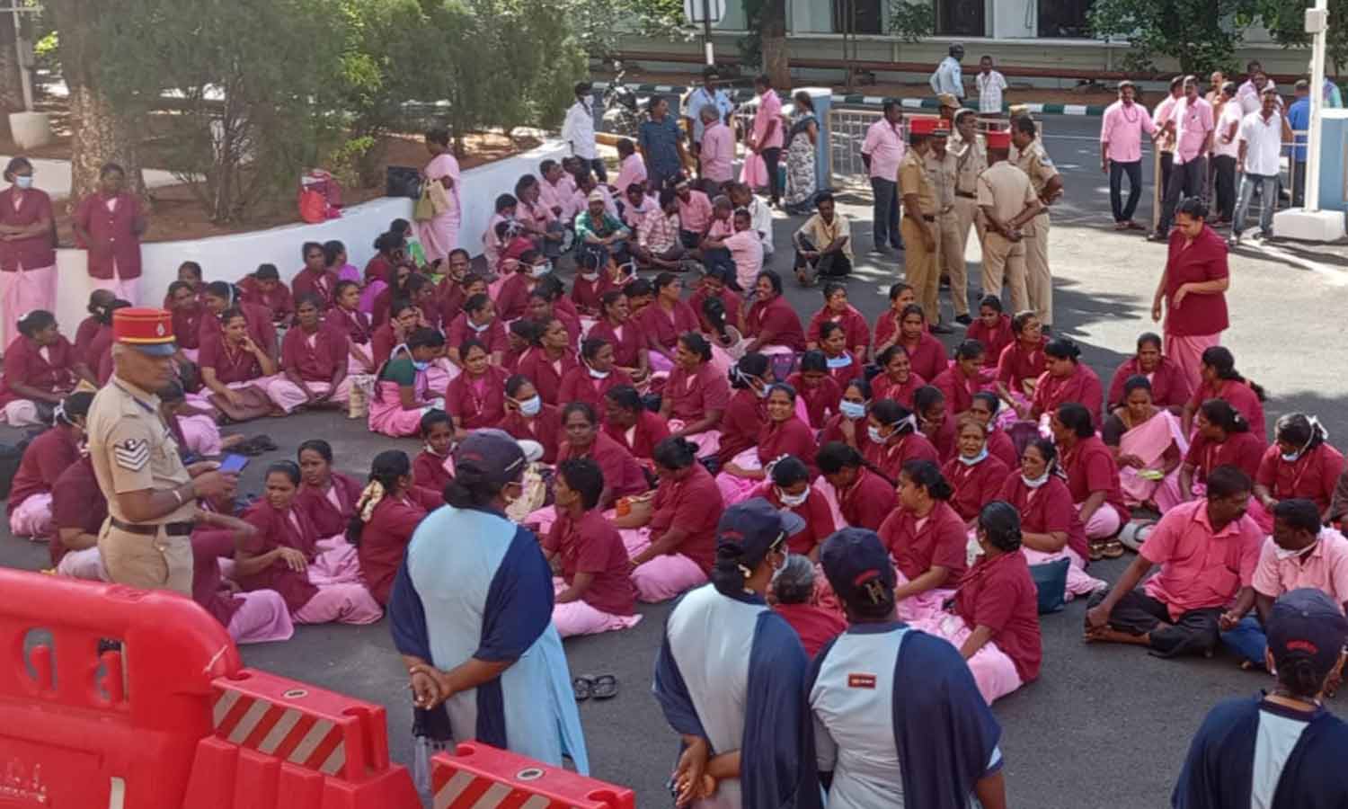 சமவேலைக்கு சம ஊதியம், அடையாள அட்டை வழங்க வேண்டும், பஞ்சப்படி வழங்க வேண்டும் என்பது உட்பட கோரிக்கைகளை வலியுறுத்தி தொழிலாளர்கள் போராட்டம் நடத்தினர். இதனால் ஜிப்மருக்கு வந்த நோயாளிகள் அவதிக்குள்ளாகினர்.
