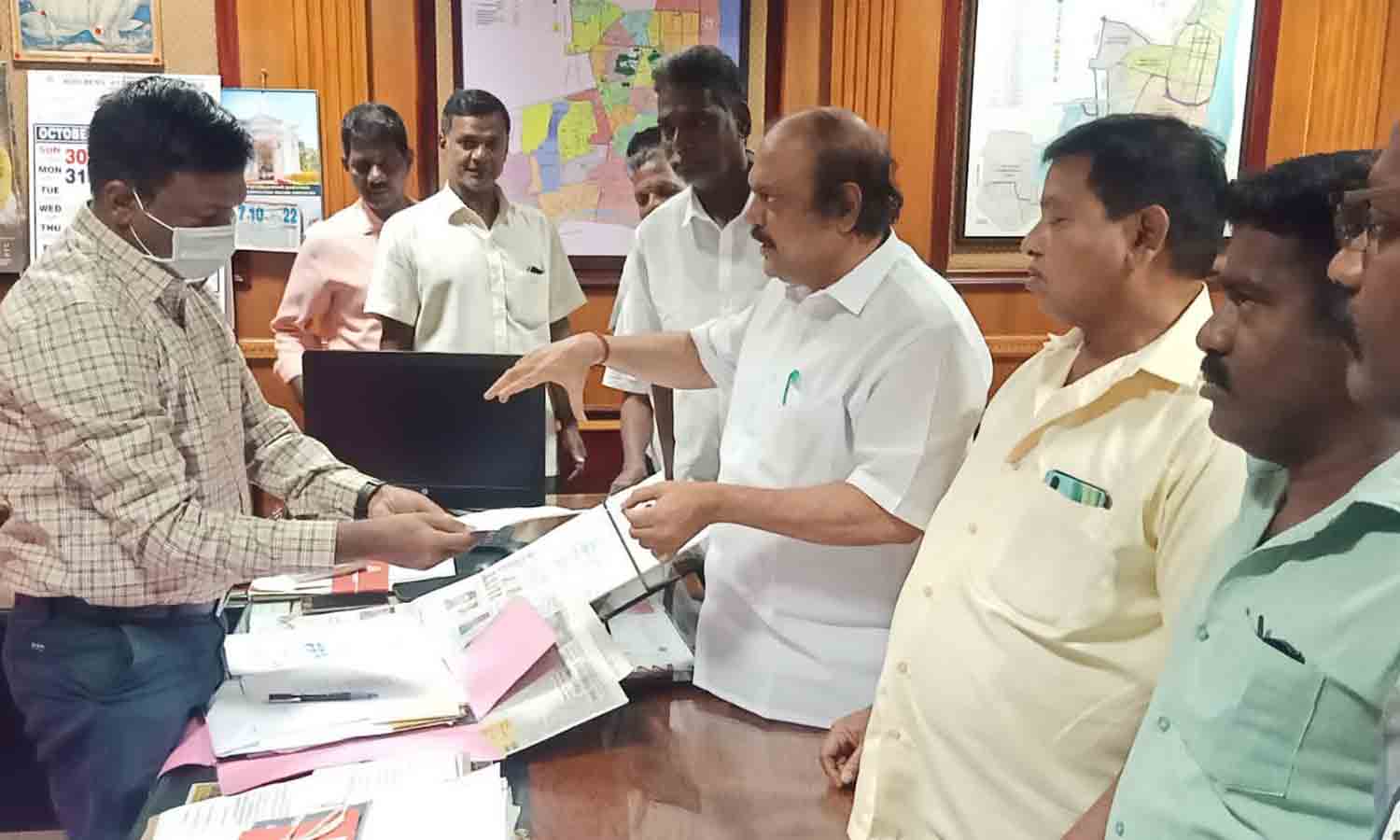அதிகாரியிடம் கென்னடி எம்.எல்.ஏ. மனு அளித்த காட்சி.