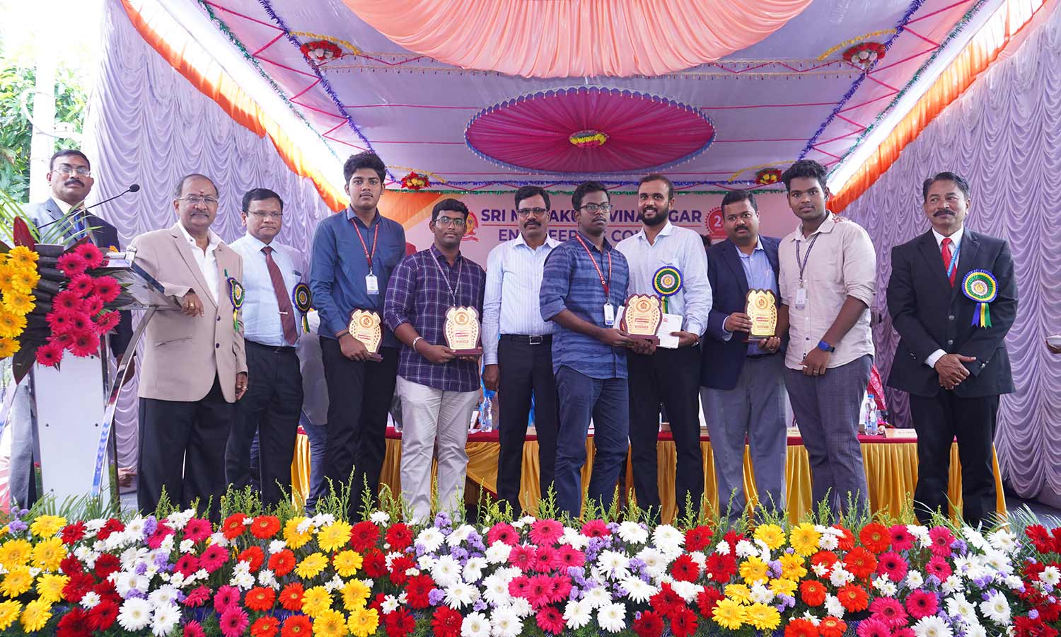 தொடக்க விழாவில் பல்வேறு போட்டிகளில் வெற்றி பெற்ற மாணவர்களுக்கு டி.சி.எஸ். பொது மேலாளர் டேனியல் ஆனந்த் கிறிஸ்டோபர், டேலன்ட் ஆக்யூசிஷன் குழு தலைவர் விக்னேஷன் பரமசிவம், மணக்குள விநாயகர் கல்வி அறக்கட்டளை தலைவர் தனசேகரன் பரிசு வழங்கினர்.