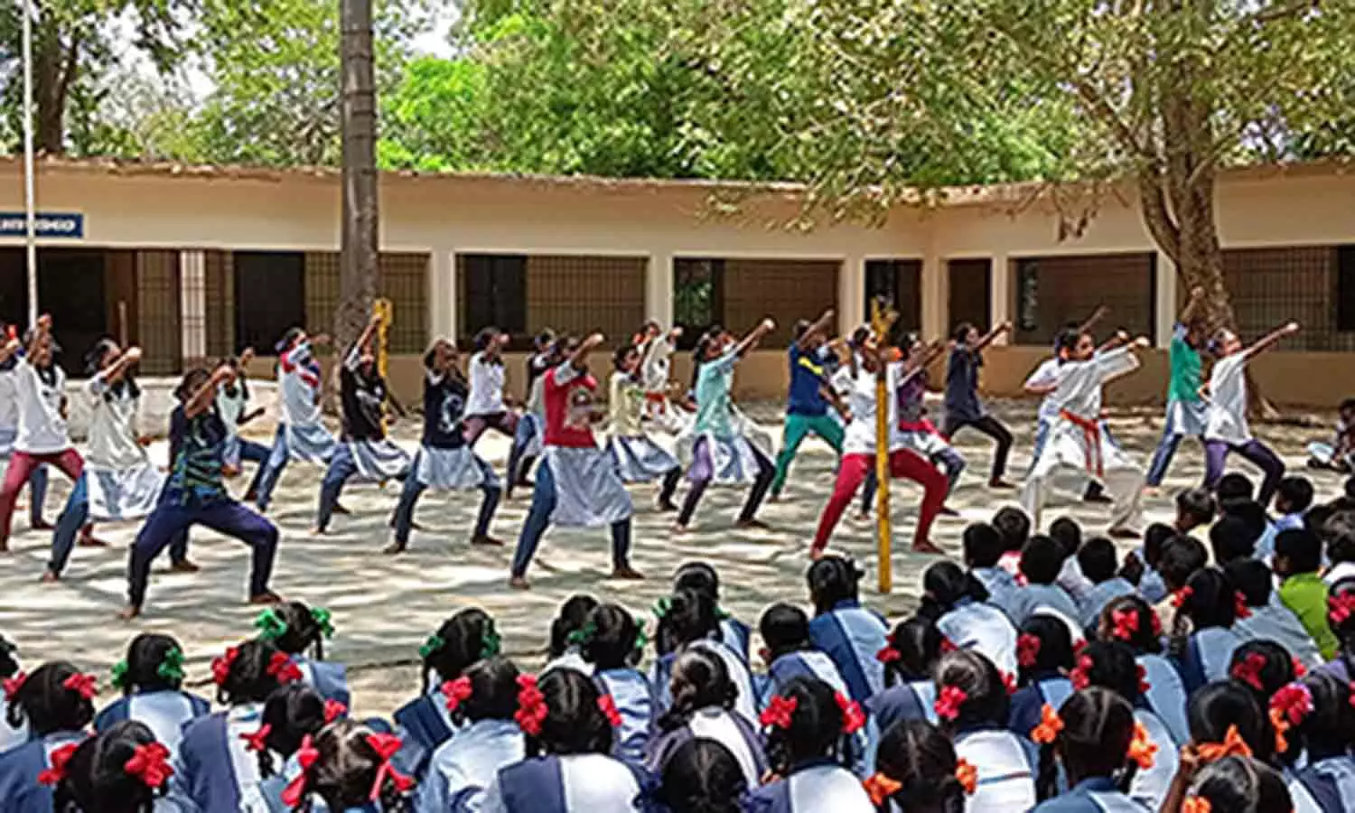 தற்காப்பு கலை பயிற்சி பரிசளிப்பு விழா நடைபெற்ற காட்சி.