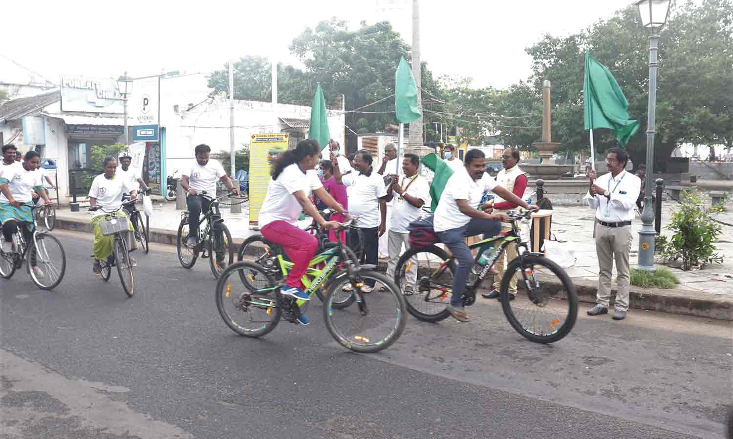 மனநல மையம் மற்றும் ரோட்டரி கிளப் ஆப் பாண்டிச்சேரி பிரின்ஸ் சிட்டி சார்பில் சைக்கிள் ஊர்வலம் நடைபெற்ற காட்சி.