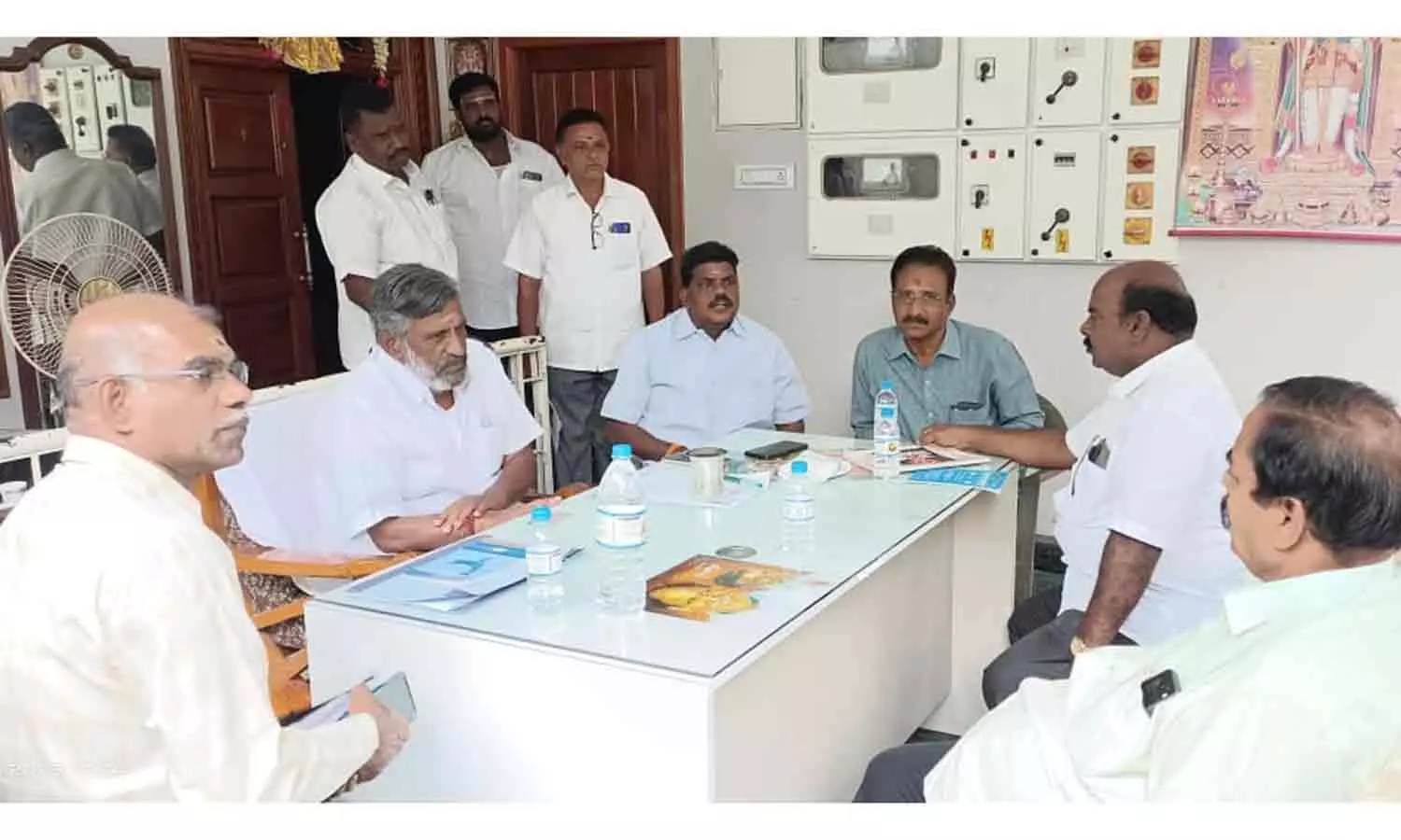 மகா புஷ்கரணி விழாவையொட்டி அமைச்சர் தேனீ.ஜெயக்குமார் அதிகாரிகளுடன் ஆலோசனை மேற்கொண்ட காட்சி.