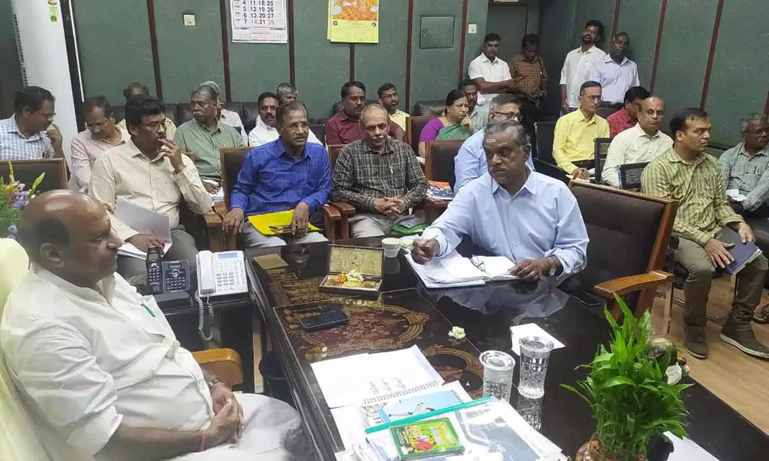 அதிகாரிகளுடன் அமைச்சர் லட்சுமி நாராயணன் ஆலோசனை நடத்திய காட்சி.