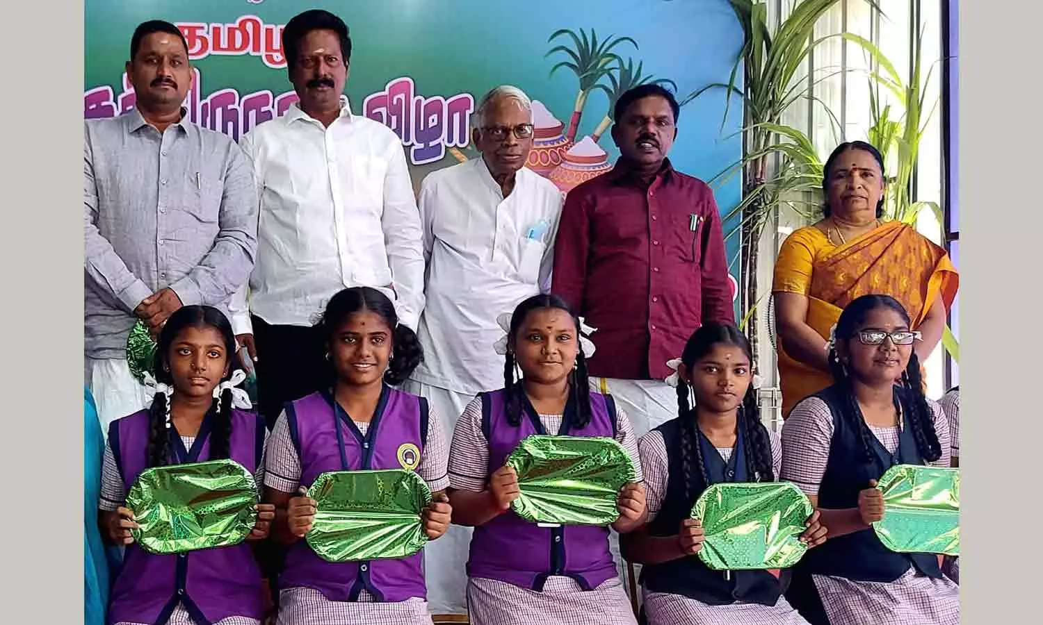 மாணவிகளுக்கு பரிசுகள் வழங்கப்பட்ட காட்சி.