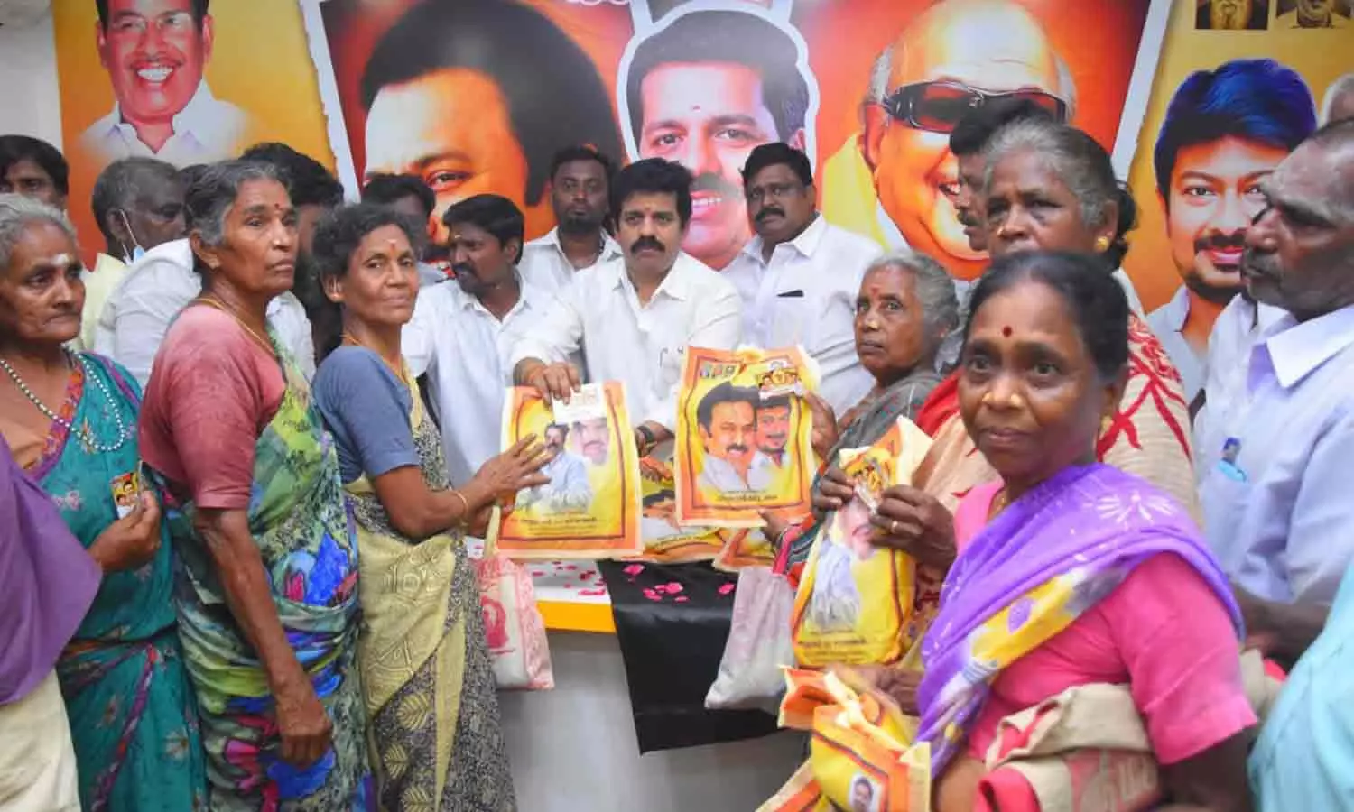 நெல்லித்தோப்பு தி.மு.க. சார்பில் 1000 பெண்களுக்கு இலவச சேலை