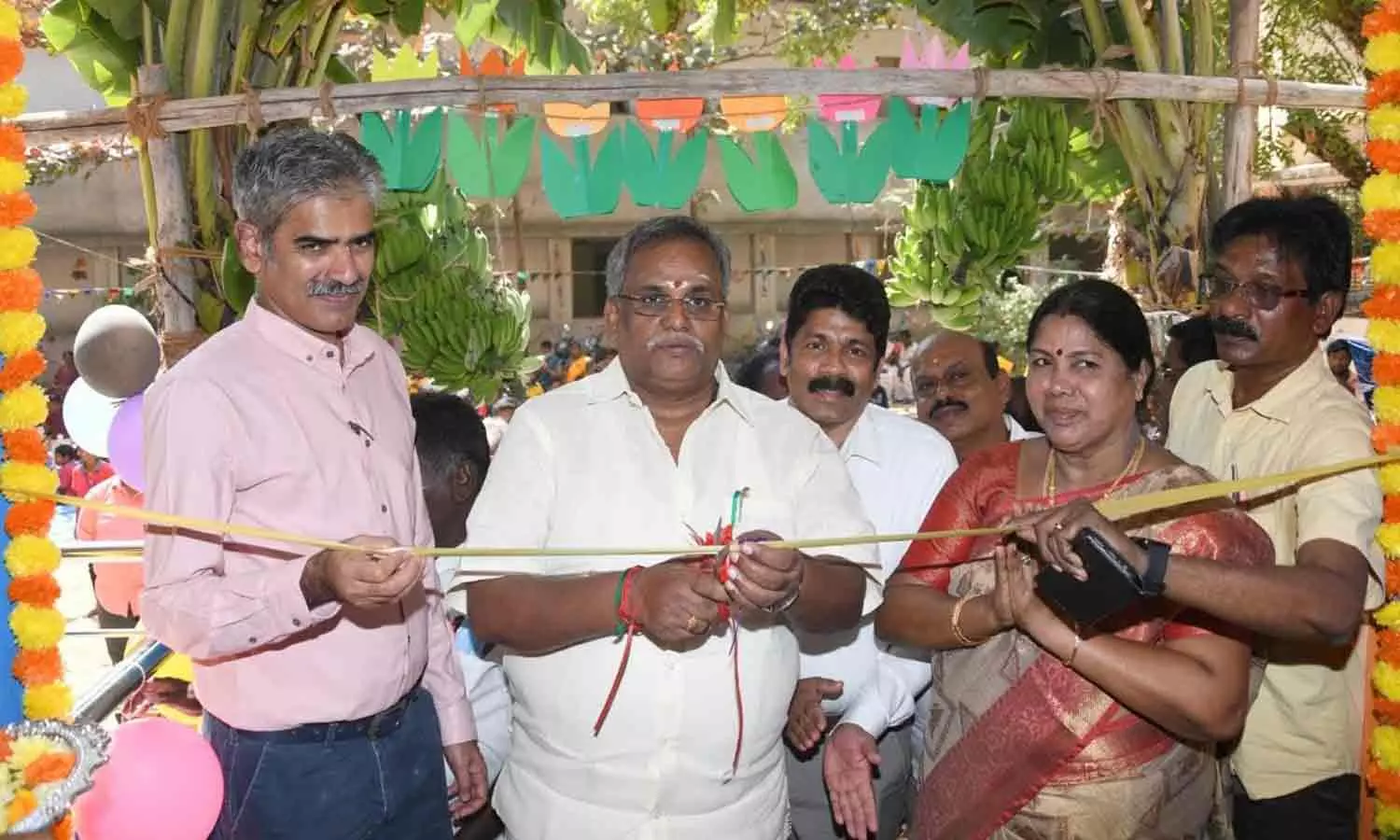 அரசு பள்ளிக்கு புதிய கட்டித்தை சபாநாயகர் ஏம்பலம் செல்வம் ரிப்பன் வெட்டி திறந்து வைத்த காட்சி.