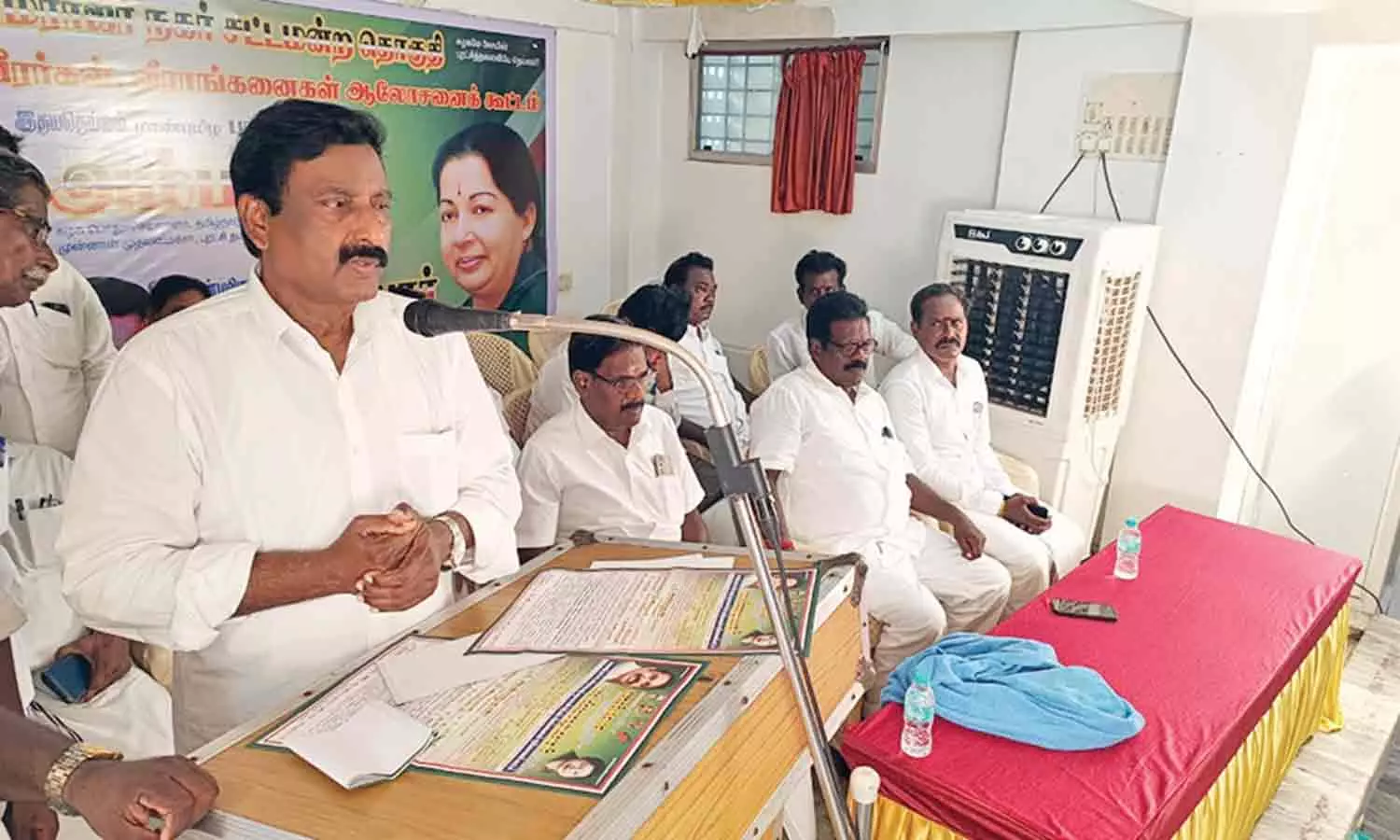 கூட்டத்திற்கு அ.தி.மு.க. தொகுதி செயலாளர் ஆறுமுகம் தலைமை தாங்கினார். முன்னாள் கவுன்சிலர் பி. கணேசன், மாநில துணை செயலாளர் எம்.ஏ.கே. கருணாநிதி, ஆகியோர் முன்னிலை வகித்தனர்.