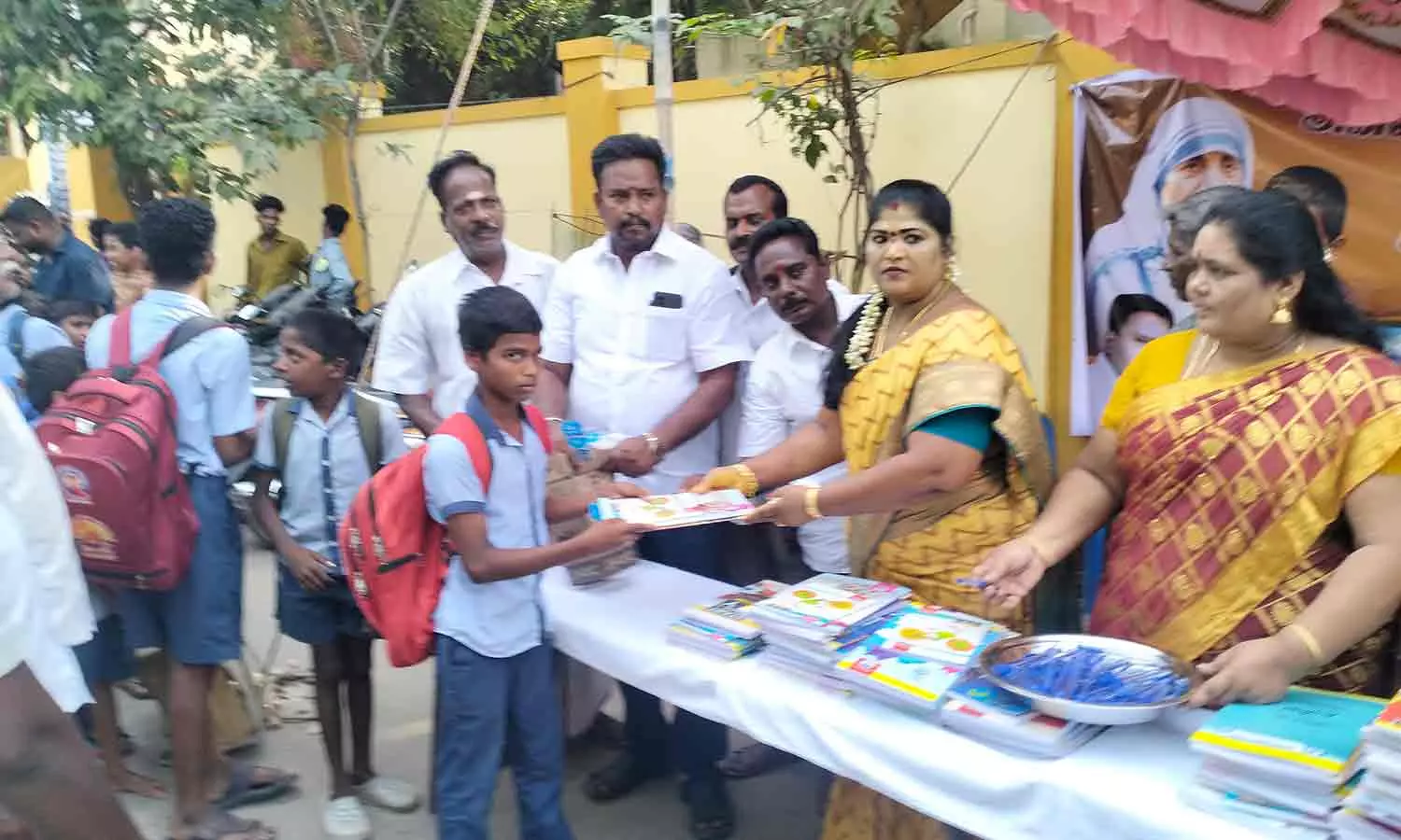 புதுவை அ.ம.மு.க. மற்றும் அன்னை தெரேசா பவுண்டேஷன் மற்றும் சரண் டிரஸ்ட் சார்பில் அன்னை தெரேசா பிறந்தநாள் விழாவினை முன்னிட்டு புதுச்சேரி கம்பன் நகர் பகுதியில் இயங்கி வரும் சுப்பையா அரசு உயர்நிலைப்பள்ளி மாணவ மாணவிகளுக்கு இலவச நோட்டு புத்தகம் உள்ளிட்ட எழுது பொருட்கள் மற்றும் நலத்திட்ட உதவிகள் வழங்கும் நிகழ்ச்சி நடைபெற்றது.