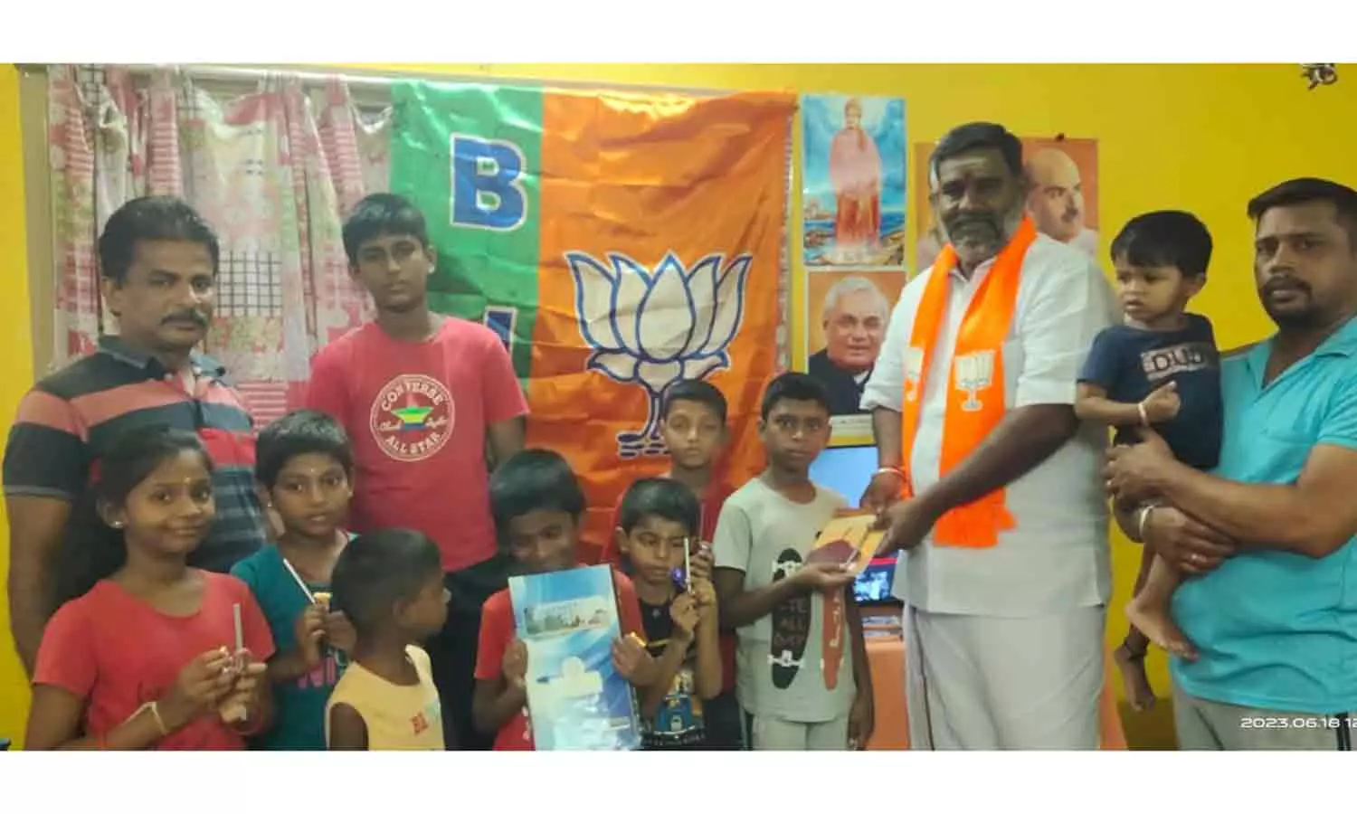மேலும் பிரதமர் மோடியின் தாயார் பிறந்தநாளையொட்டி மாணவர்களுக்கு நோட்டு புத்தகம், எழுதி பொருட்கள் வழங்கப்பட்டது.
