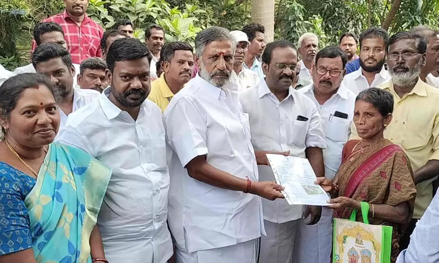 தொடர்ந்து மங்கலம் தொகுதியில் ஏழைகளுக்கு அரசு கொடுத்த மனைப்பட்டாவுக்கு புதிய வழிகாட்டு மதிப்பீடுடன் கூடிய மனைப்பட்டாவை 700 பயனாளிகளுக்கு வழங்கினார்.
