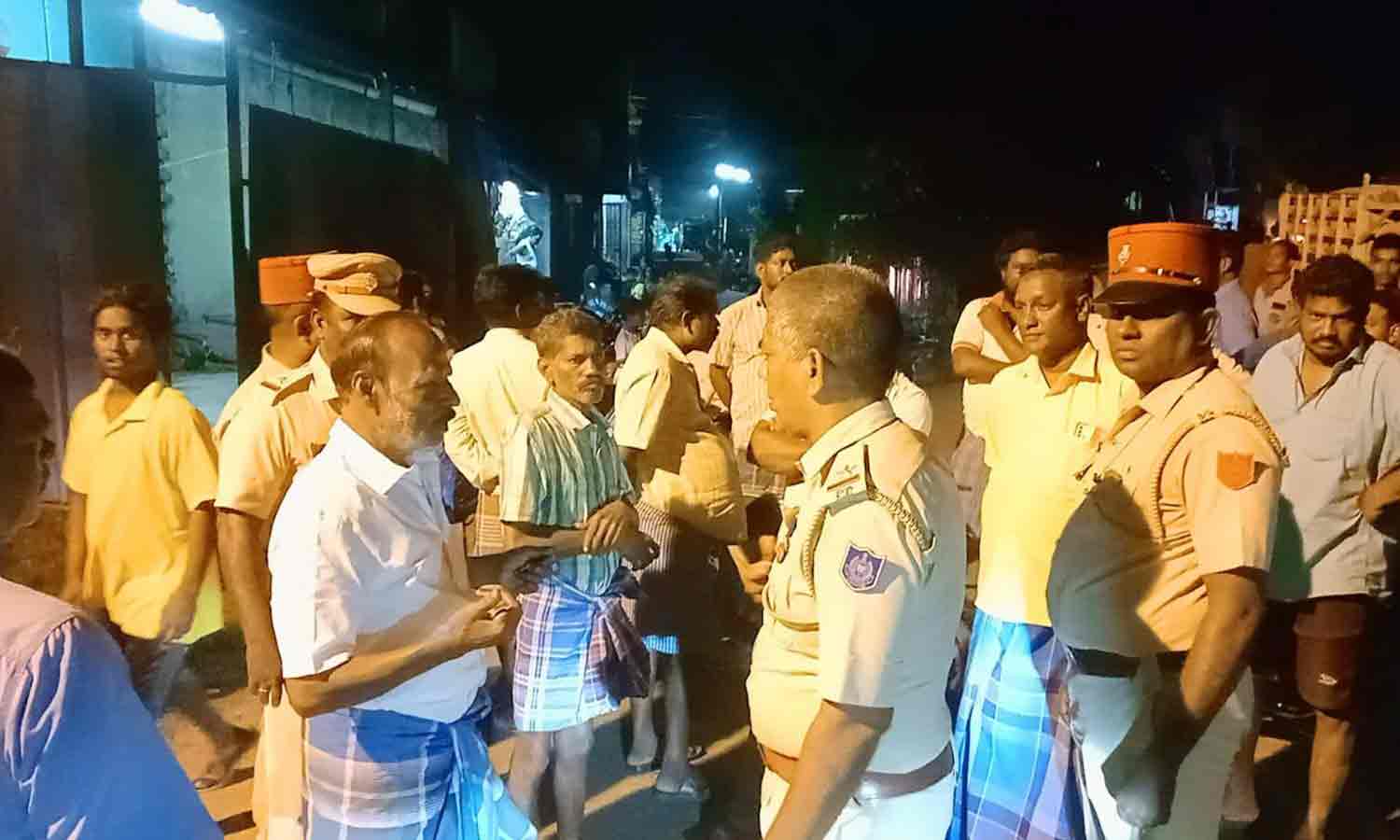 மறியலில் ஈடுபட்ட பொது மக்களுடன் போலீசார் பேச்சு வார்த்தை நடத்திய காட்சி.