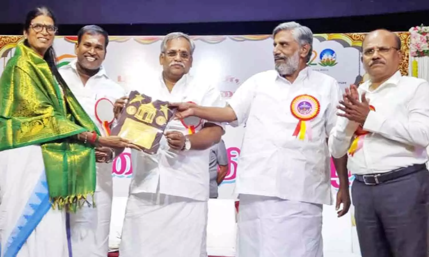 சாதனை திருநங்கையர்களுக்கு சபாநாயகர் ஏம்பலம் செல்வம் விருது வழங்கினார். அருகில் அமைச்சர்கள் தேனீ.ஜெயக்குமார், சாய்.ஜெ.சரவணன்குமார், கலெக்டர் வல்லவன் ஆகியோர் உள்ளனர்.