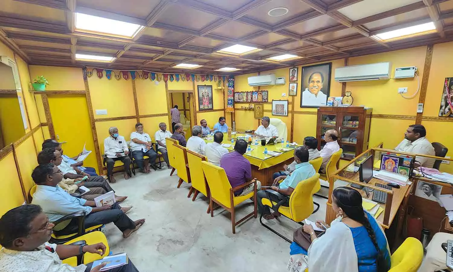 - அதிகாரிகளைக் கொண்டு கலந்தாய்வு கூட்டம் நடைபெற்றது.