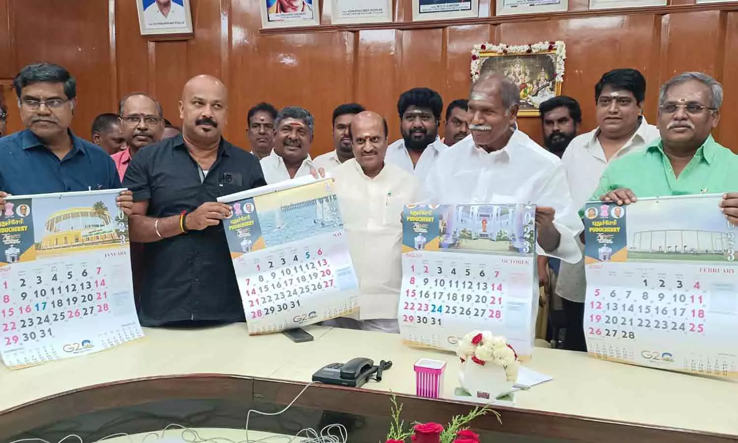 முதல்-அமைச்சர் ரங்கசாமி காலண்டரை வெளியிட்டார். சபாநாயகர் ஏம்பலம் செல்வம், அமைச்சர் லட்சுமி நாராயணன், எம்.எல்.ஏ.க்கள், ஏ.கே.டி. ஆறுமுகம், பி.ஆர்.சிவா ஆகியோர் பெற்றுக்கொண்டனர்.