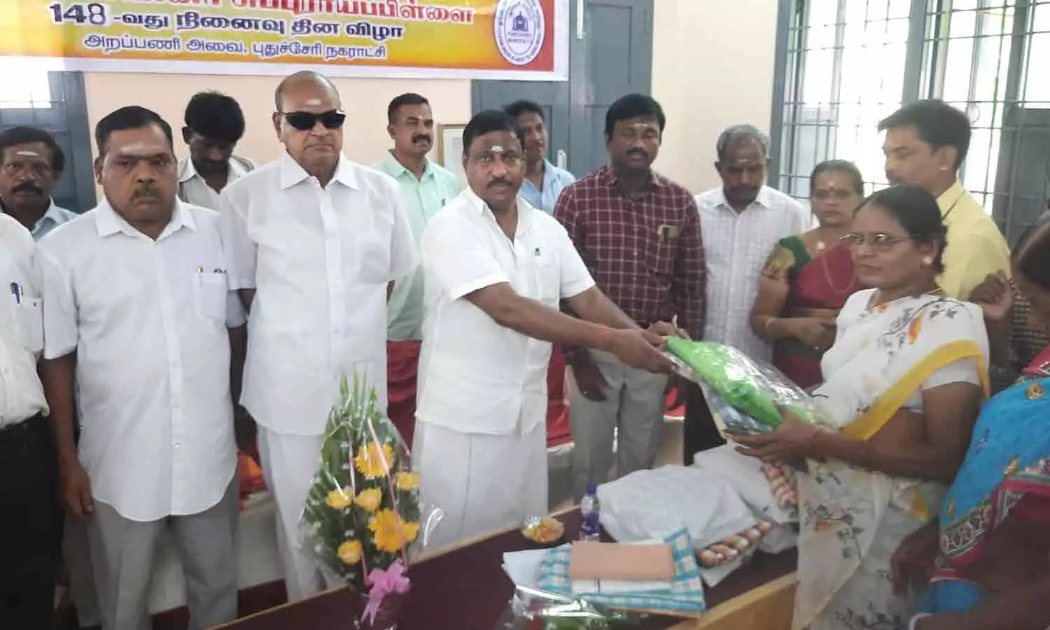 மறைமலை அடிகள் சாலை கென்னடி நகர் சுப்புராயப்பிள்ளை சத்திரத்தில் உள்ள அவரின் நினைவிடத்தில நேரு எம்.எல்.ஏ. மலர்தூவி அஞ்சலி செலுத்தினர். தொடர்ந்து ஏழைகளுக்கு புத்தாடைகள் வழங்கப்பட்டது.