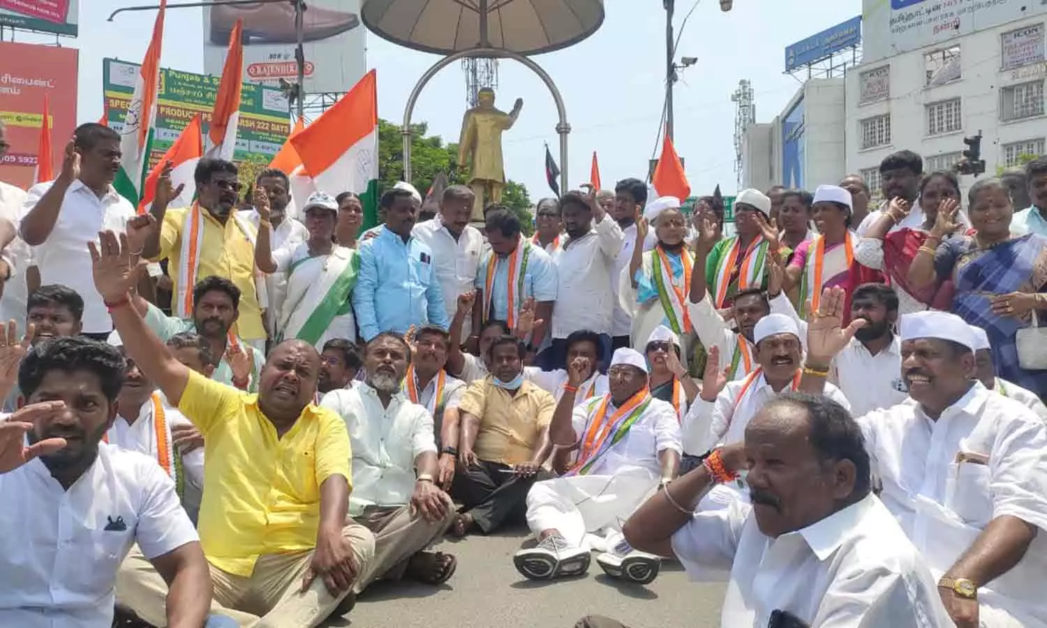இதுகுறித்து தகவல் அறிந்து விரைந்து வந்த போலீசார் சமாதானப்படுத்தி கலைந்து போக வலிறுத்தினார். ஆனால் காங்கிரசார் தொடர்ந்து போராட்டத்தில் ஈடுபட்டதால், அவர்களை கைது செய்து செய்தனர்.