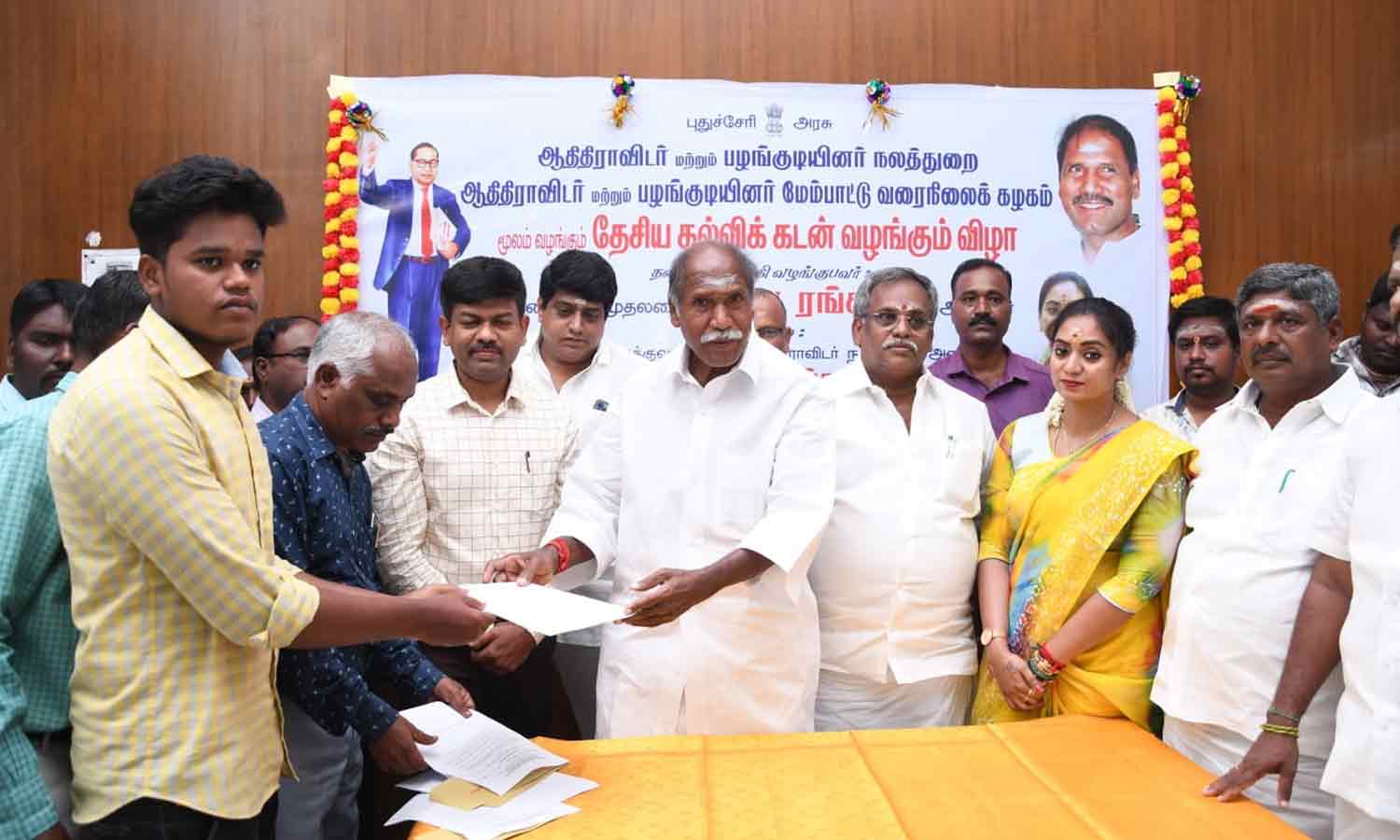 புதுவை ஆதிதிராவிடர் மற்றும் பழங்குடியினர் மேம்பாட்டு வரைநிலைக் கழகத்தின் மூலம் தேசிய கல்விக்கடன் வழங்கும் நிகழ்ச்சி நடந்தது.